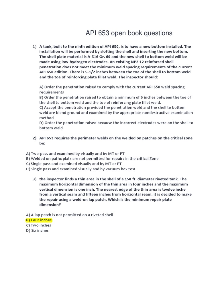 Watch 1-Api 653 Open Book Questions | PDF | Welding | Construction viral